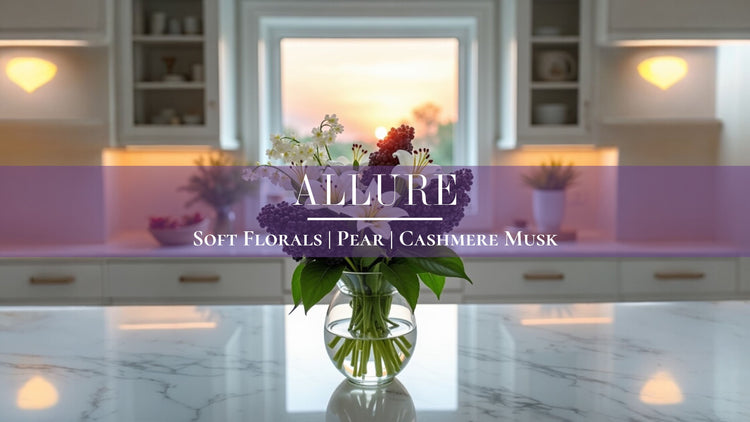 Allure is a captivating blend of bergamot, saffron, pear, and cotton blossom. Soft florals, plum, and sugar melt into smoky sandalwood, vetiver, and cashmere musk. A luxurious, seductive scent that lingers with mystery and elegance in every flicker.