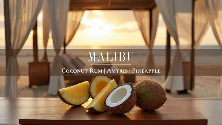 Malibu captures the essence of a tropical escape with a zesty blend of tangerine, orange peel, and lemon. Pineapple and sandalwood add depth, while the base notes of coconut rum, sugar, cedar, and amyris evoke sun-soaked beaches and serene evenings. Perfect for a touch of paradise.